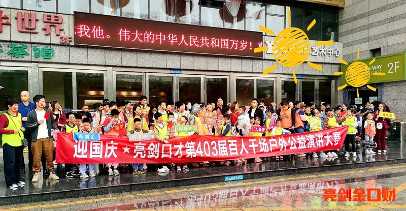 作为亮剑口才一年一度的国庆专场活动,百人千场户外演讲(国庆版)组织亮剑口才的大小学员们以演讲、朗诵、讲故事等方式传播爱国情怀。