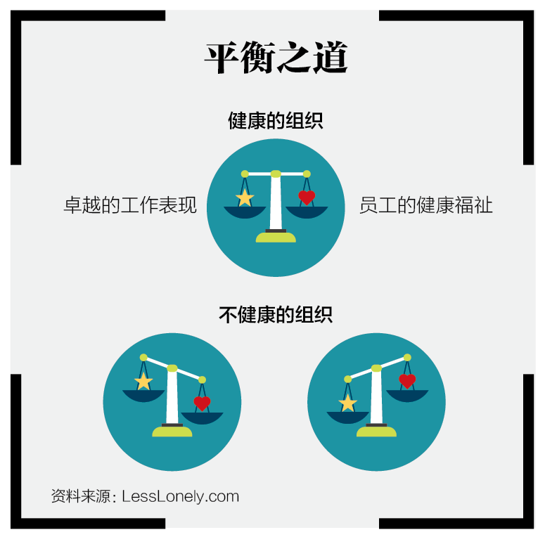 健康的组织已经找到了同时实现人性尊严与企业绩效的路径。他们不会为了追求绩效目标而牺牲员工福祉,也不会为了满足员工个人之需而放弃绩效。他们在两者之间找到了平衡点。减少孤独感既有利于员工,也有助于企业达到卓越境界。